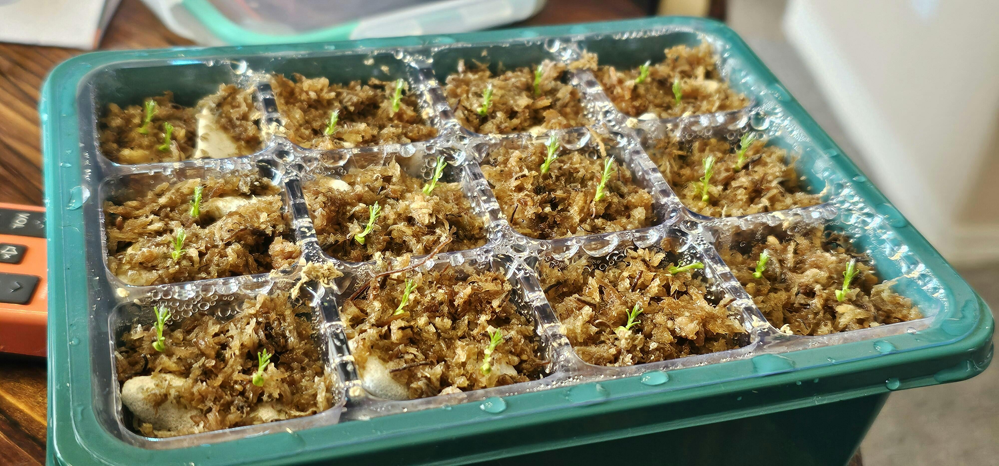 Pro Tip: Scatter gemmae on in a pot of 50/50 peat/sand or a bed of live sphagnum moss or peat/perlite mix, mist daily, and provide bright, direct light (or grow lights). Germination in 2-4 weeks – your mini jungle awaits!