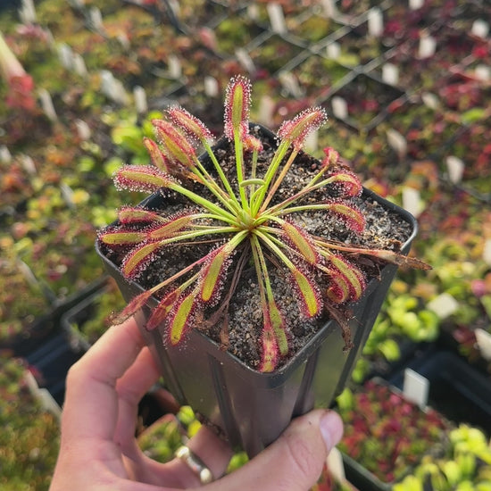 Browse our curated selection of Drosera capensis for sale, ideal for both beginner and expert carnivorous plant growers. Known for their dazzling, dew-covered leaves and efficient insect-trapping abilities, Drosera make a striking addition to any plant collection. Each plant is cultivated with care and shipped bare-root to ensure safe, clean transport and healthy establishment in your setup. Whether you're expanding your carnivorous plant collection or discovering sundews for the first time, you'll find a variety of stunning species and hybrids in our shop. Bring home a living work of art and enjoy nature's elegant pest control.