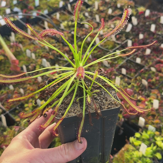 Browse our curated selection of Drosera capensis for sale, ideal for both beginner and expert carnivorous plant growers. Known for their dazzling, dew-covered leaves and efficient insect-trapping abilities, Drosera make a striking addition to any plant collection. Each plant is cultivated with care and shipped bare-root to ensure safe, clean transport and healthy establishment in your setup. Whether you're expanding your carnivorous plant collection or discovering sundews for the first time, you'll find a variety of stunning species and hybrids in our shop. Bring home a living work of art and enjoy nature's elegant pest control.